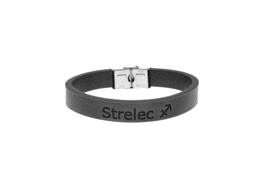 Pánský kožený náramek černý se znamením Strelec + dárkové balení