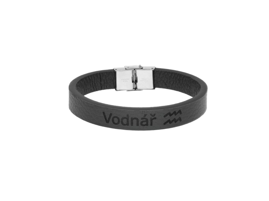 Pánský kožený náramek černý se znamením Vodnář + dárkové balení