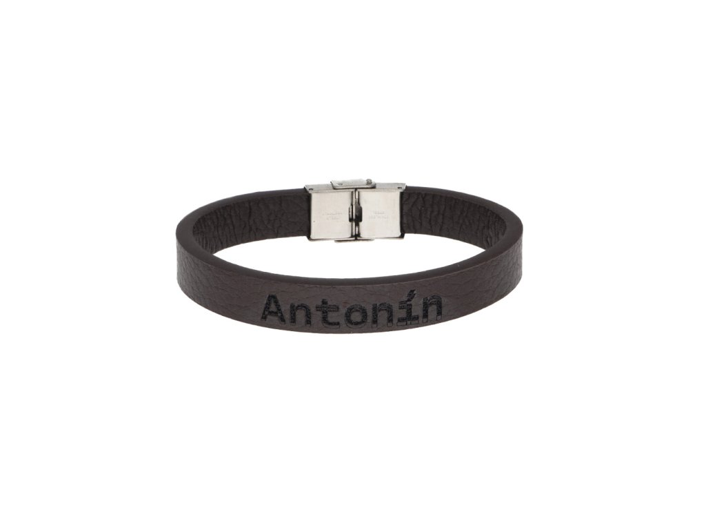 Pánský kožený náramek hnědý se jménem Antonín + dárkové balení