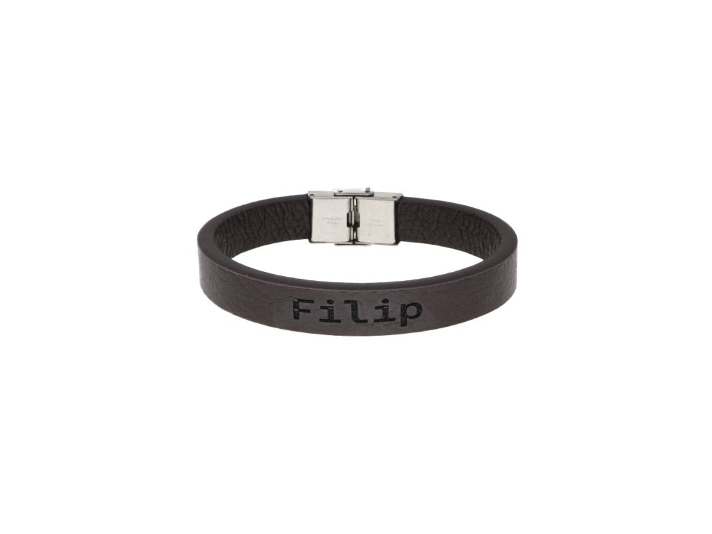 Pánský kožený náramek hnědý se jménem Filip + dárkové balení