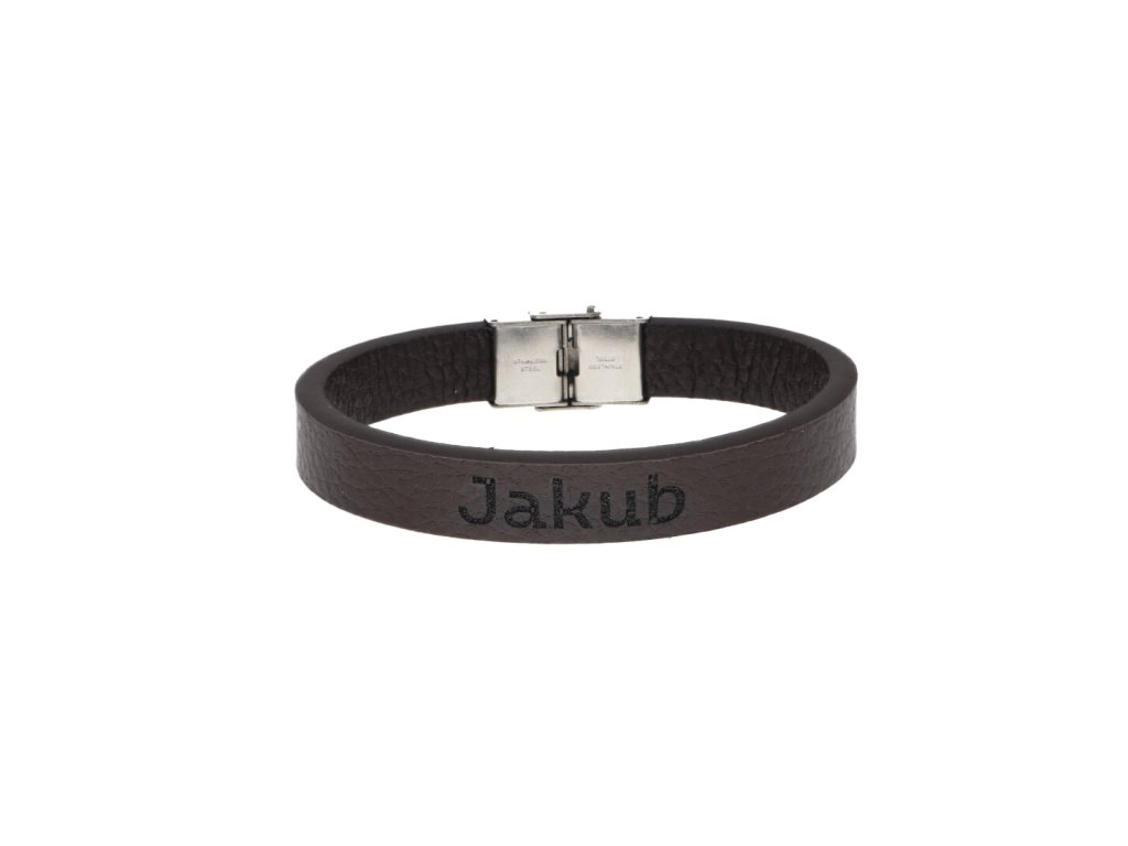 Pánský kožený náramek hnědý se jménem Jakub + dárkové balení