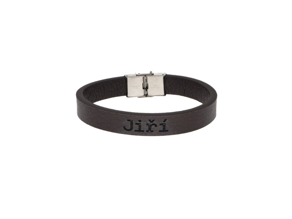 Pánský kožený náramek hnědý se jménem Jiří + dárkové balení