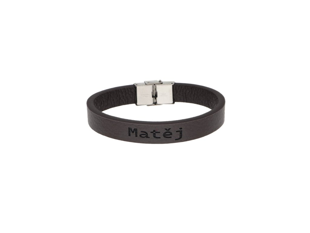 Pánský kožený náramek hnědý se jménem Matěj + dárkové balení