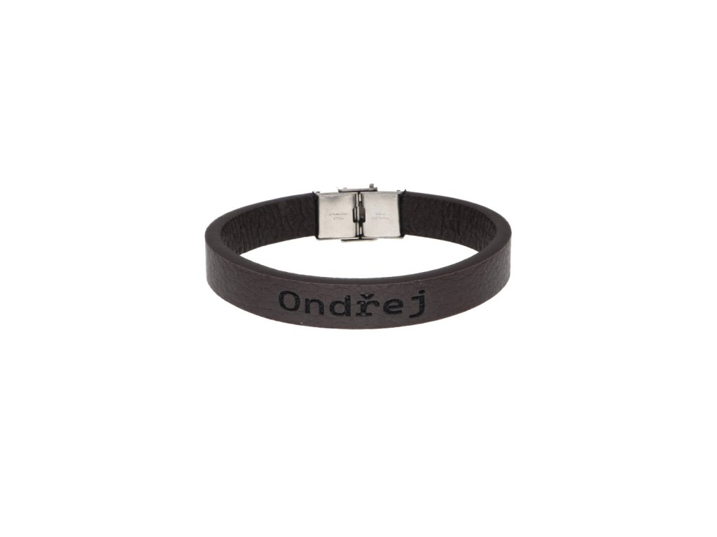 Pánský kožený náramek hnědý se jménem Ondřej + dárkové balení