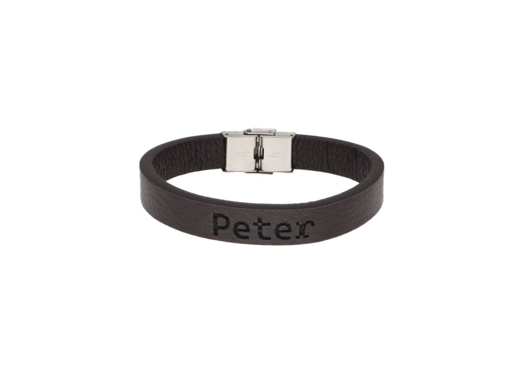 Pánský kožený náramek hnědý se jménem Peter + dárkové balení