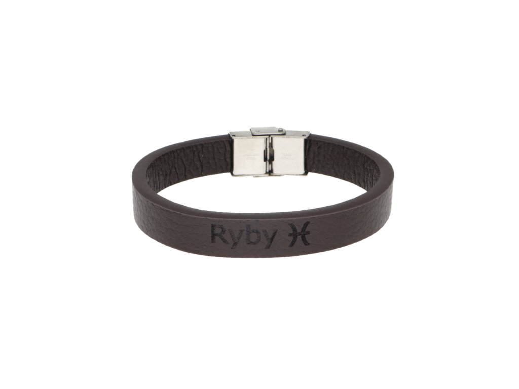 Pánský kožený náramek hnědý se znamením Ryby + dárkové balení