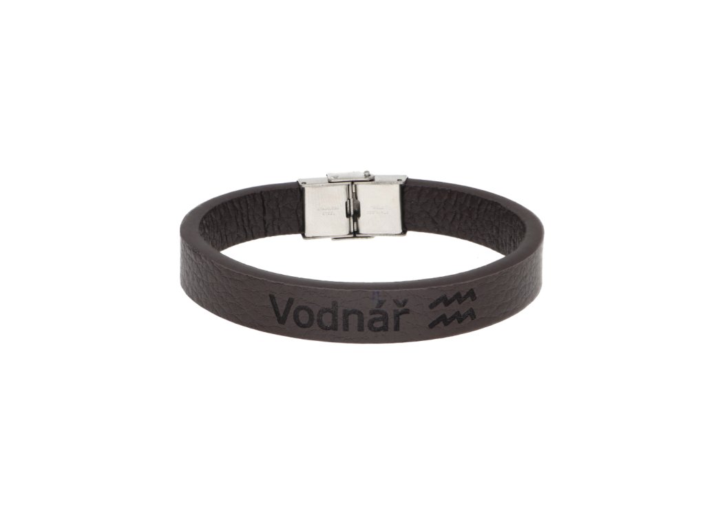 Pánský kožený náramek hnědý se znamením Vodnář + dárkové balení