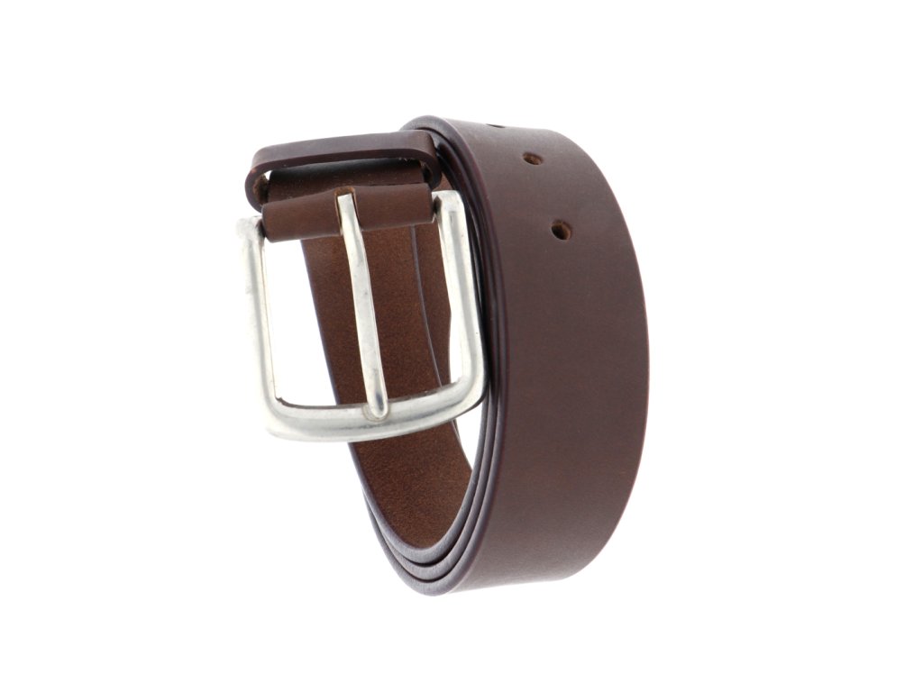 Pánský opasek z pravé kůže v hnědé barvě.