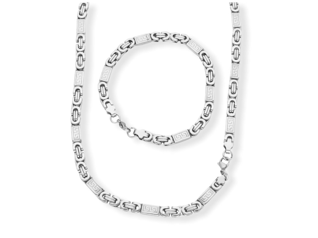 Pánský náhrdelník s náramkem z chirurgické oceli / řecký klíč KA281 + dárkové balení