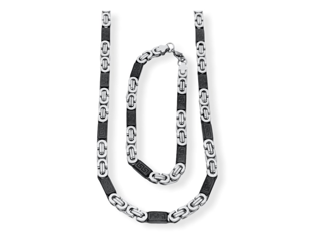 Pánský náhrdelník s náramkem z chirurgické oceli / řecký klíč KA920 + dárkové balení