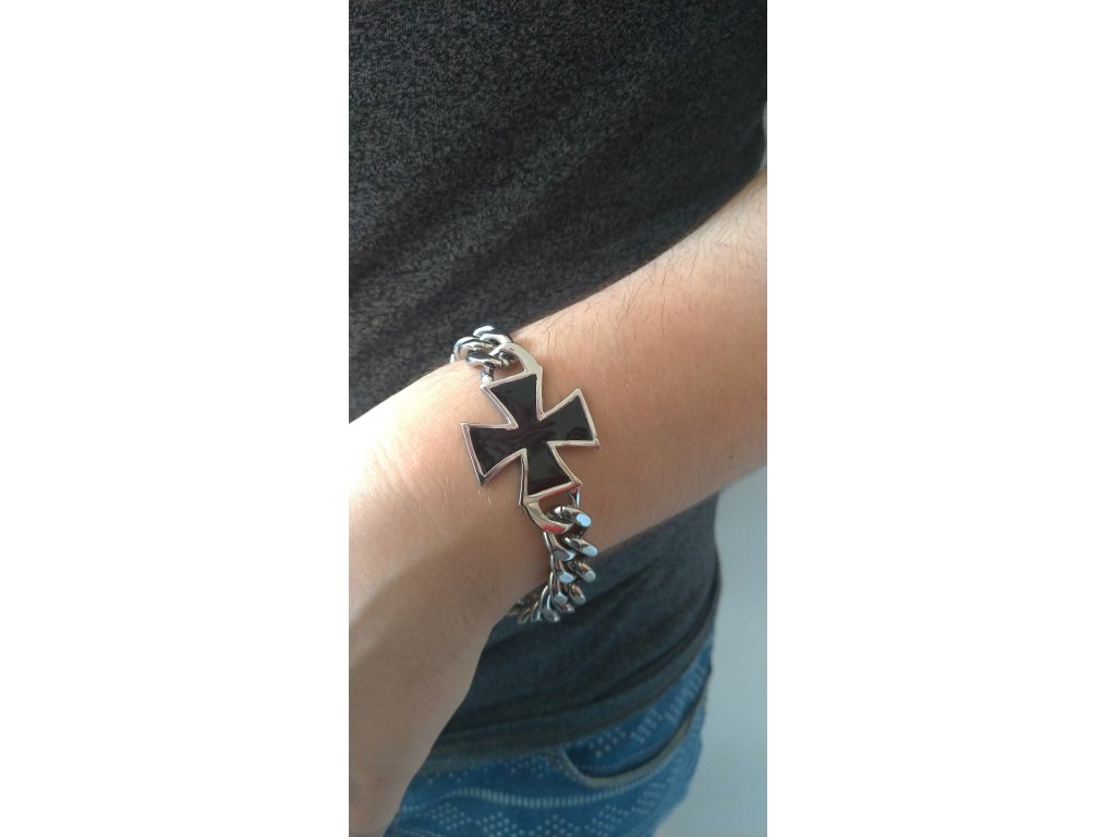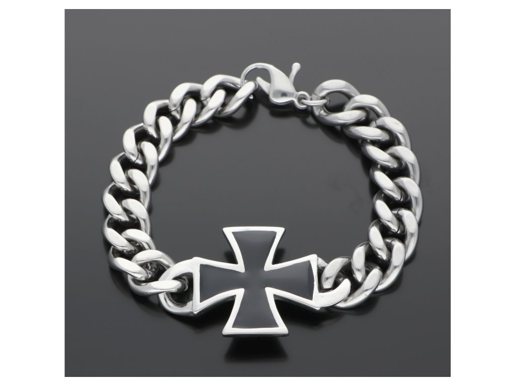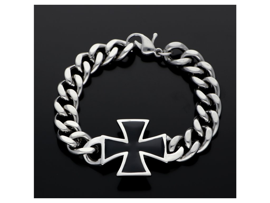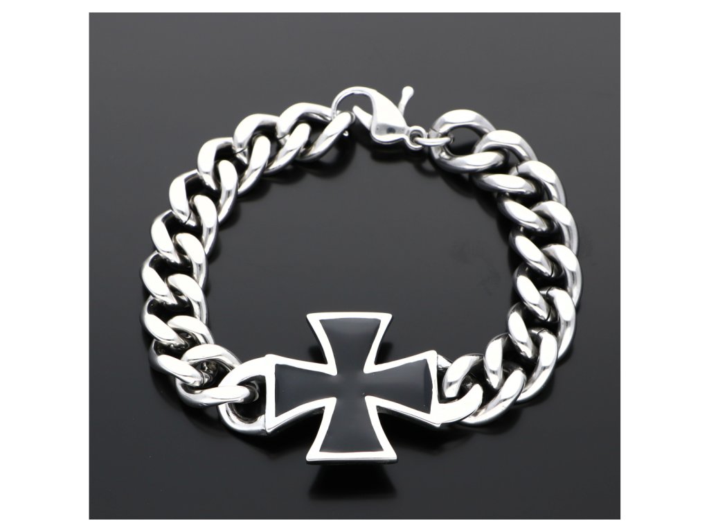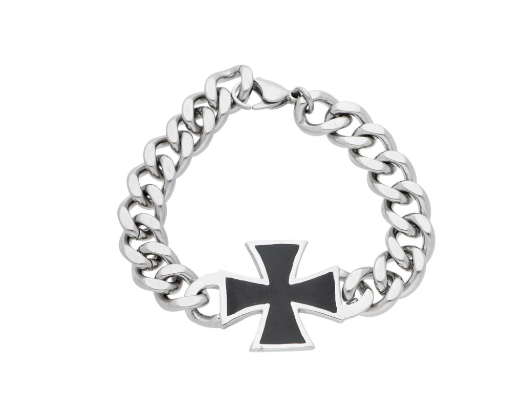 Maltézský kříž je symbolem odvahy a statečnosti, což z něj činí ideální motiv pro pánský náramek. Kříž má rozměr 3 x 3 cm a je pečlivě zpracován do nejmenších detailů, což dodává celkovému designu náramku sofistikovaný vzhled.