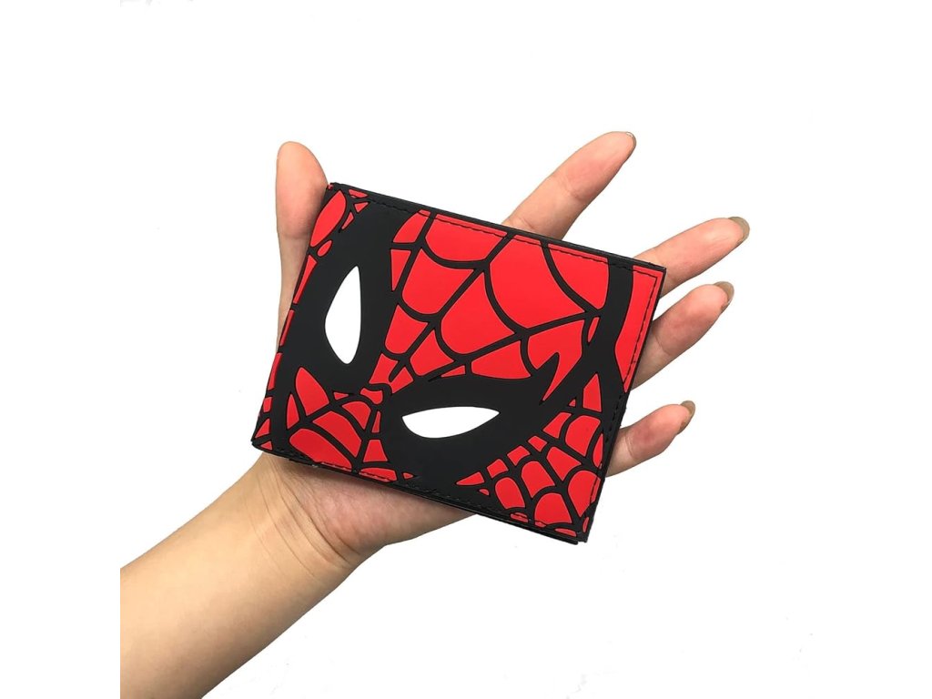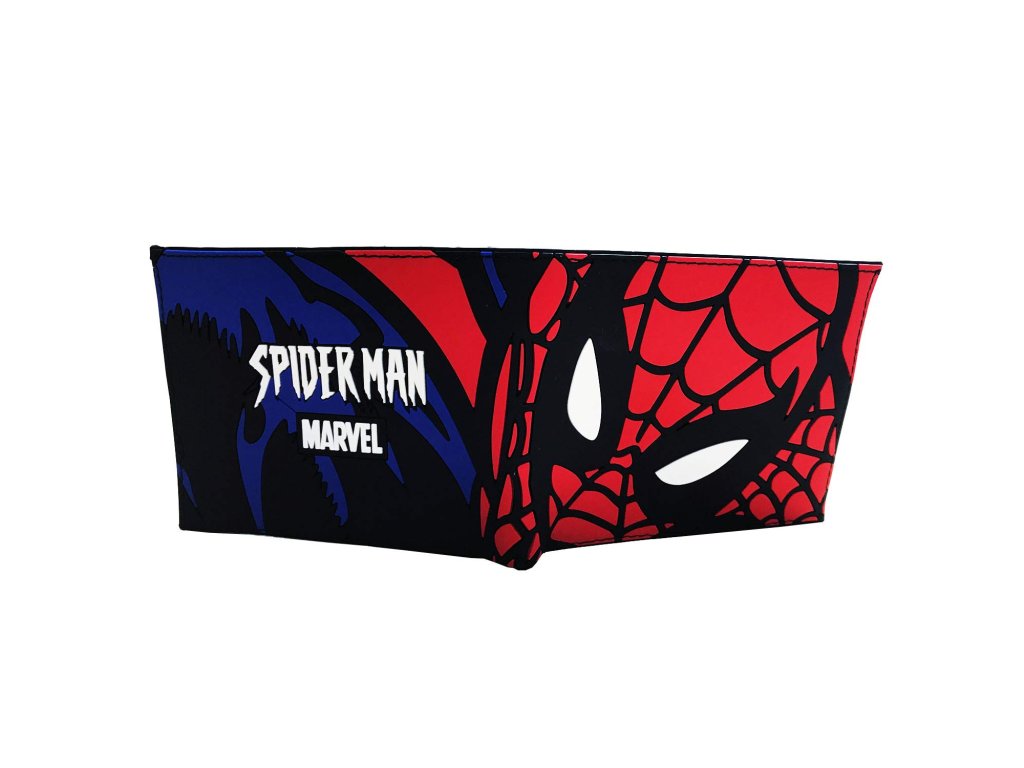 Na vnější straně dominuje výrazný červený motiv s ikonickým pavučinovým vzorem a detailním pohledem na Spidermanovu masku. Vizuálně atraktivní design zaujme na první pohled a dodává peněžence superhrdinský styl.