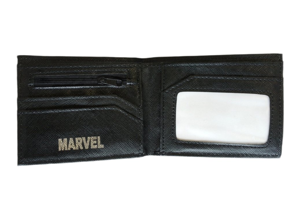Peněženka je vyrobena z odolného syntetického materiálu s jemnou strukturou, který vyniká dlouhou životností a snadnou údržbou. Vnitřní část je provedena v černé barvě a ozdobena decentním logem Marvel, což potvrzuje její oficiální licencovaný původ. Uvnitř peněženky se nachází praktická průhledná kapsa na průkaz nebo fotografii, několik slotů na karty a malá kapsička na zip, vhodná na drobné mince. Díky přehlednému uspořádání bude mít každý hrdina své finance pod kontrolou, ať už ve škole nebo na výpravě za dobrodružstvím.