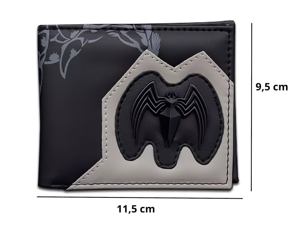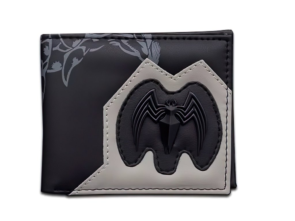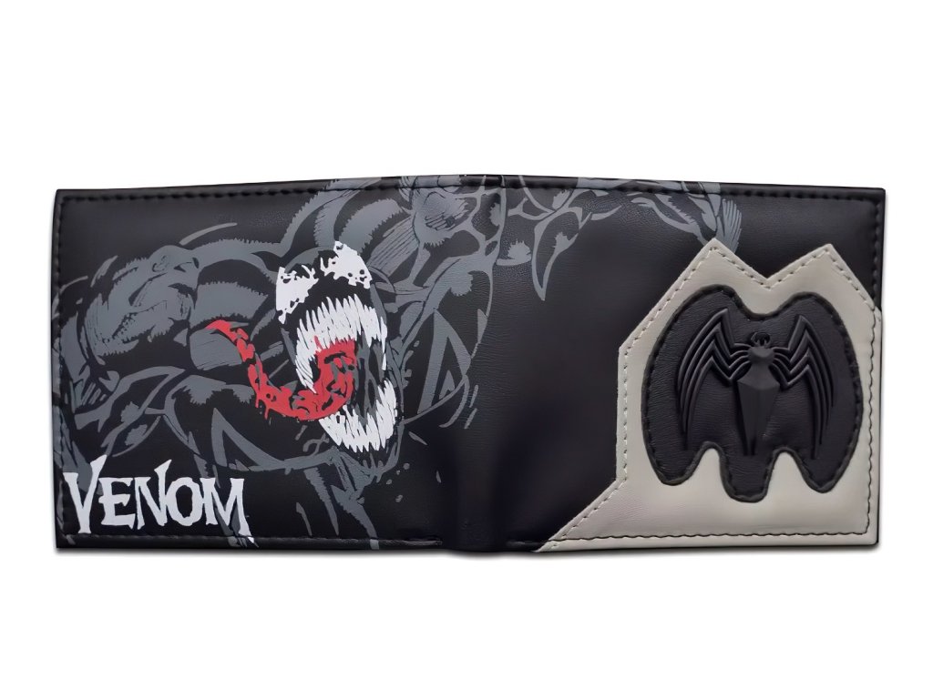 Design je inspirován temným a nebezpečným vzhledem Venoma, což podtrhuje černý základ s grafickým potiskem jeho hrozivé tváře a rudého jazyka. Nápis "Venom" v bílém kontrastním písmu dodává celkovému vzhledu dramatický nádech. Na přední straně peněženky se navíc nachází 3D logo černého pavouka - logo Venoma, které je umístěno na šedém koženém detailu, čímž vytváří zajímavý vizuální efekt.