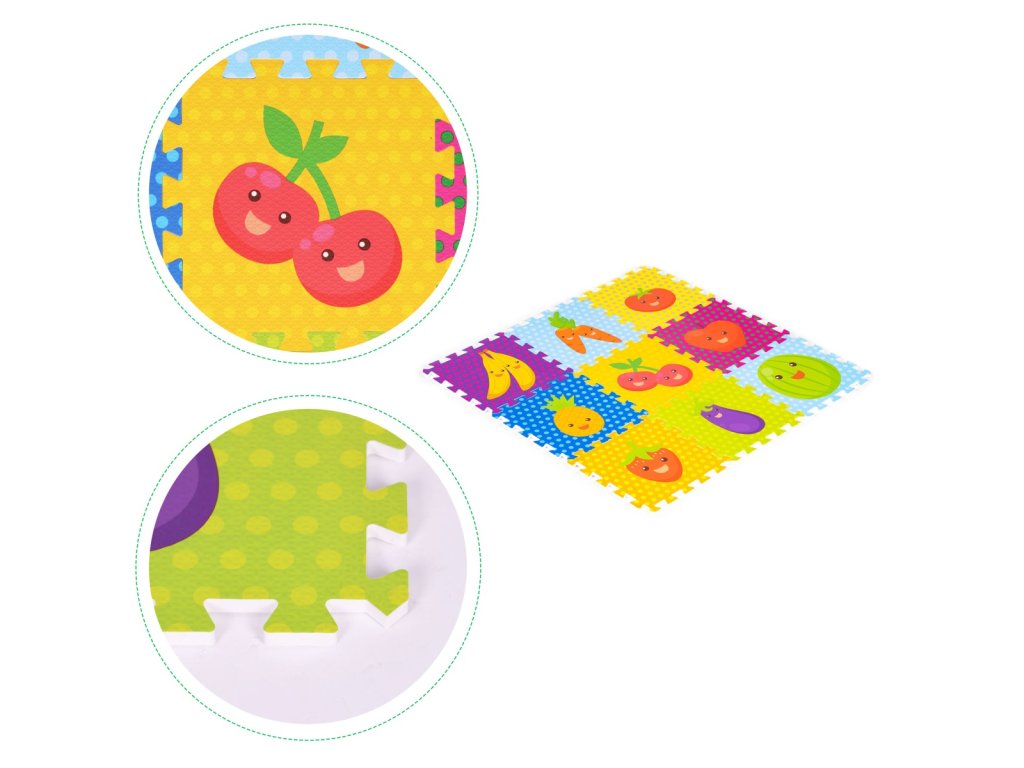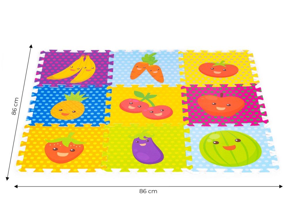 Pěnová hrací podložka – puzzle. Ideální jako měkké a bezpečné místo pro hraní malých dětí. Perfektní na hraní i první krůčky. 9 barevných dílů. Celkový rozměr po složení: 86 × 86 cm. Tloušťka podložky: 1 cm. Podložka se spojuje jako puzzle. Vyrobena ze speciální certifikované pěny EVA. Možnost vytvoření libovolného tvaru podložky. Vhodná na všechny typy podlah. Snadná údržba – stačí otřít vlhkým hadříkem. Rozložená podložka chrání dítě před chladem i nárazem při pádu. Bezpečné provedení pro děti. Originální produkt značky IPLAY. Ideální pro děti. Malé děti se nejlépe cítí na podlaze, kde mohou svobodně objevovat svět kolem sebe. Proto je důležité, aby měly měkké a pohodlné místo na hraní. Tato pěnová podložka vytváří ideální prostor pro každé malé dítě. Ozdobena je veselými motivy ovoce a zeleniny – jako banán, jahoda, mrkev, meloun nebo rajče. Tyto hravé vzory podporují rozvoj fantazie, vnímání barev a tvarů. Promyšlený design. Podložka se skládá z barevných čtverců, jejichž okraje mají speciální zoubky pro snadné spojování. Tloušťka 1 cm zajišťuje výbornou ochranu při pádu a podložka je příjemně měkká. Povrch je protiskluzový a zcela bezpečný pro děti. Bezpečná pro děti. Podložka byla navržena s důrazem na bezpečí a komfort nejmenších. Protiskluzová struktura zaručuje, že zůstává stabilní na různých typech podlah a minimalizuje riziko uklouznutí při hře nebo učení chůze. Technické parametry. Doporučený věk: od 12 měsíců. Materiál: pěna EVA (bez ftalátů, BPA a formamidu). Počet dílů: 9 ks. Hmotnost: 0,6 kg. Rozměr balení: 30 × 30 × 9 cm. Rozměr složené podložky: 86 × 86 cm. Tloušťka: 1 cm. Certifikace: CE, EN 71-1/2/3 – bezpečné pro děti. Pěnová puzzle podložka IPLAY je skvělou volbou pro rodiče, kteří hledají bezpečné, měkké a hravé místo pro své dítě. Kvalitní materiál a snadná údržba zajistí pohodlné používání každý den. Upozornění a zákonné informace. Výrobek splňuje požadavky evropské normy EN 71 a je opatřen označením CE. Vhodné pro děti od 12 měsíců. Před prvním použitím omyjte vlhkým hadříkem a nechte důkladně vyschnout. Podložka není určena pro venkovní použití, v blízkosti otevřeného ohně nebo zdrojů tepla. Používejte pouze pod dohledem dospělé osoby. Uchovávejte obal pro pozdější potřebu. Složení materiálu: 100 % EVA pěna – netoxická, bez zápachu, bez ftalátů a těžkých kovů. Likvidace: Recyklovat jako plastový odpad podle místních předpisů.Doplňkové parametry