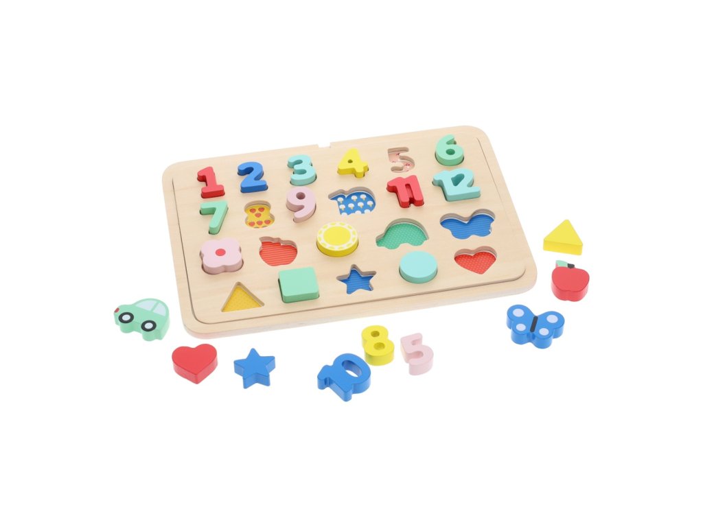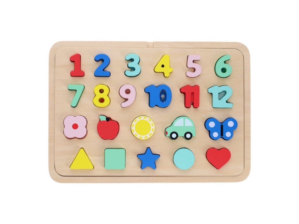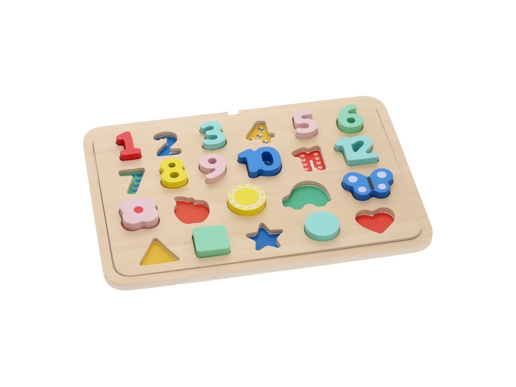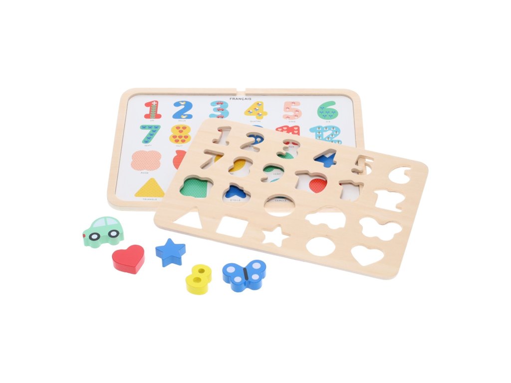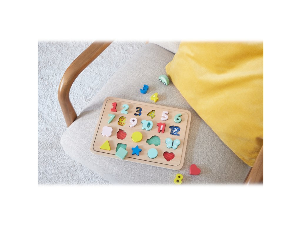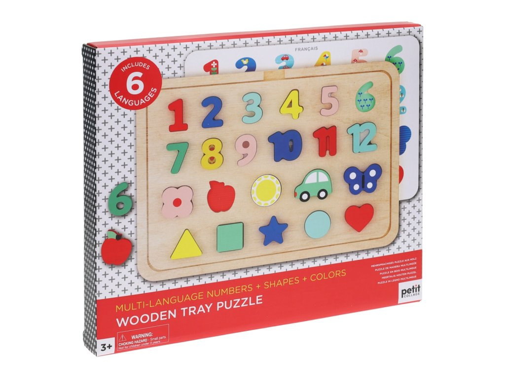 Petit Collage Vkládací puzzle s čísly a tvary vícejazyčné