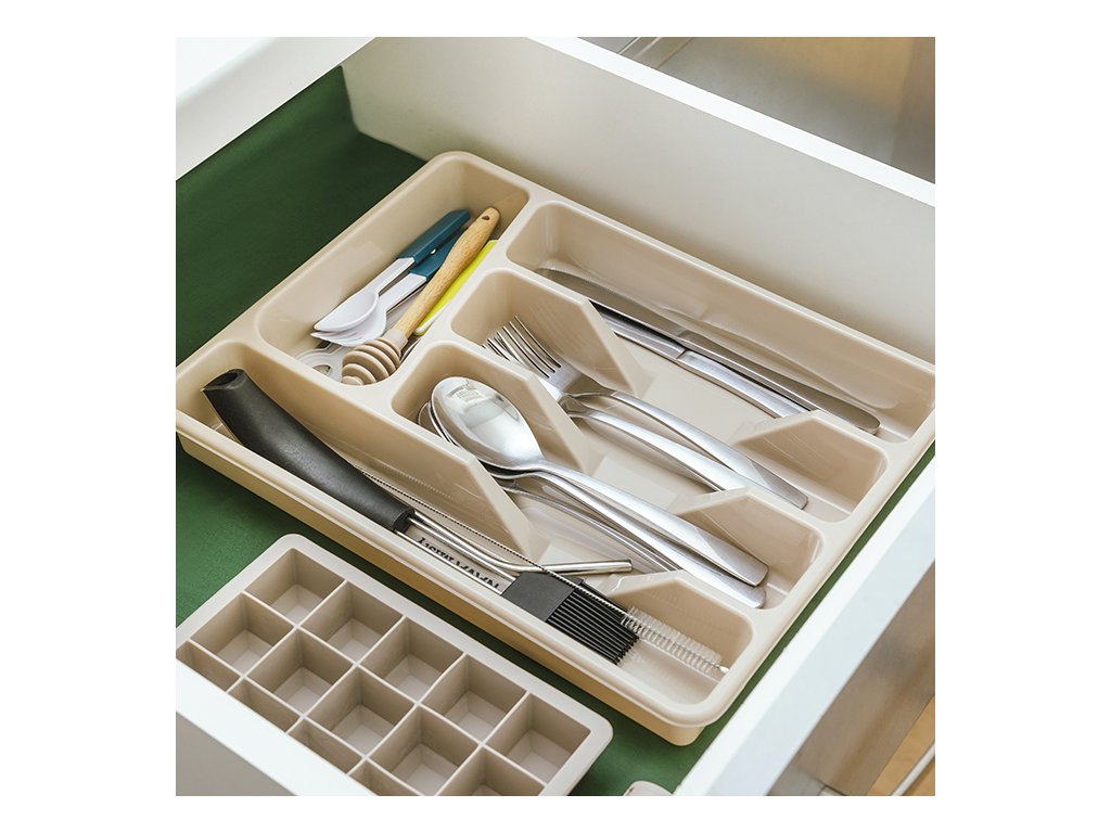 Praktický příborník do zásuvky obsahuje 3 velké přihrádky na lžíce, vidličky a nože , 1 větší přihrádku na náčiní a 1 menší přihrádku na lžíce a vidličky.