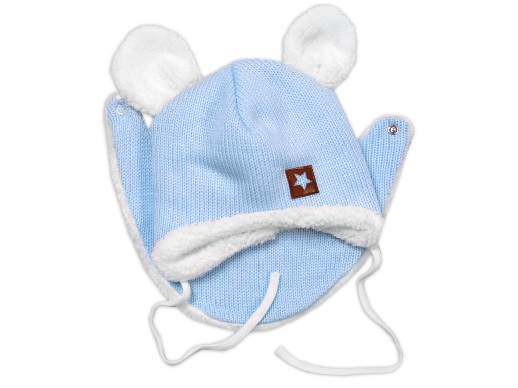 Pletená zimní čepice s kožíškem a šátkem Star, modrá