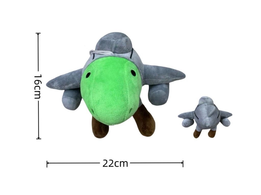 Tělo hračky je tvořeno hebkým šedým plyšem, připomínajícím letadlové křídla a trup, zatímco přední část s hlavou krokodýla je zářivě zelená a příjemná na dotek. Hnědé nožky dodávají postavičce nečekaný a komický prvek, díky kterému si ji zamilují děti i dospělí. Se svými rozměry je ideální na hraní i jako originální doplněk sbírky fanoušků série Brainrot. Její výrazný vzhled okamžitě zaujme každého, kdo má rád netradiční plyšáky.