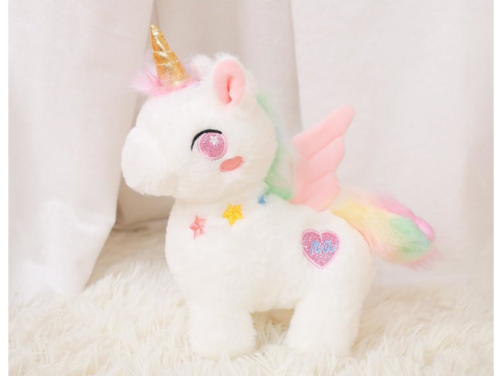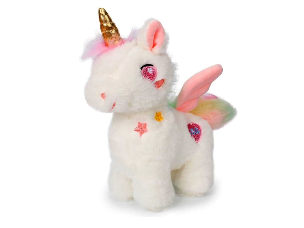 Tato kouzelná plyšová hračka ve tvaru jednorožce o velikosti 25 cm je snem každého malého milovníka pohádek.