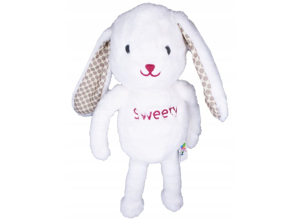 Plyšová hračka Králíček. Nadýchaný mazlíček byl vytvořen speciálně pro mazlení. Zajíček Sweety má pár dlouhých uší a hebkou srst, díky které si ho chcete pohladit. Vnitřní strana uší je zdobena barevným materiálem. Plyšák zpříjemní chvíle zdřímnutí a může vás doprovázet i při různých hrách. Výrobek je určen pro děti od narození.Doplňkové parametry
