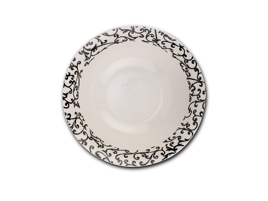 Je vyrobena z kvalitního porcelánu. Má krásný moderní dekor v černé barvě, stane se tak ozdobou Vašeho stolu nejen ve svátečních chvílích; její velikost a tvar zaručuje, že ji budete často používat. Ideální je nakombinovat ji spolu s dalším nádobím stejného dekoru. Má univerzální využití, lze ji použít k podávání salátů a jiných pokrmů. Snadné mytí, vhodná do myčky i k použití v mikrovlnné troubě.