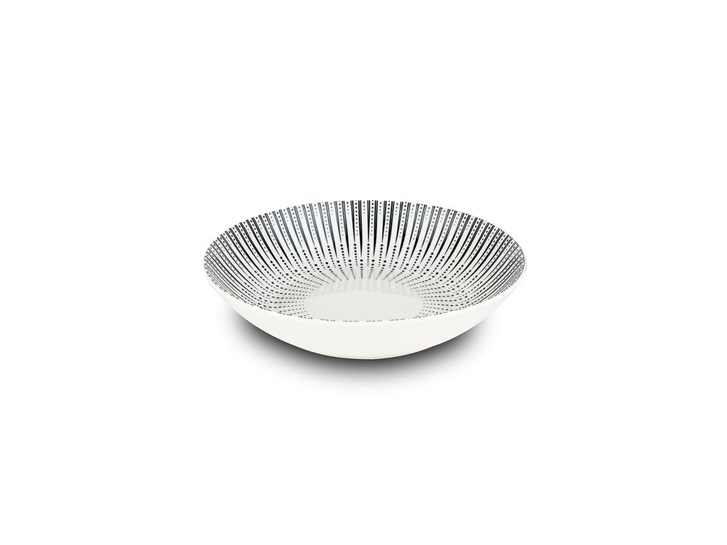 Je vyroben z kvalitního porcelánu. Má krásný moderní dekor v černé barvě, stane se tak ozdobou Vašeho stolu nejen ve svátečních chvílích, ale také při každodenním použití. Ideální je nakombinovat jej spolu s dalším nádobím stejného dekoru. Vynikající pro servírování domácích polévek, vývarů, krémů. Talíř lze použít také k podávání vloček, jogurtů, ovoce, salátů nebo přesnídávek. Snadné mytí, vhodný do myčky i k použití v mikrovlnné troubě.