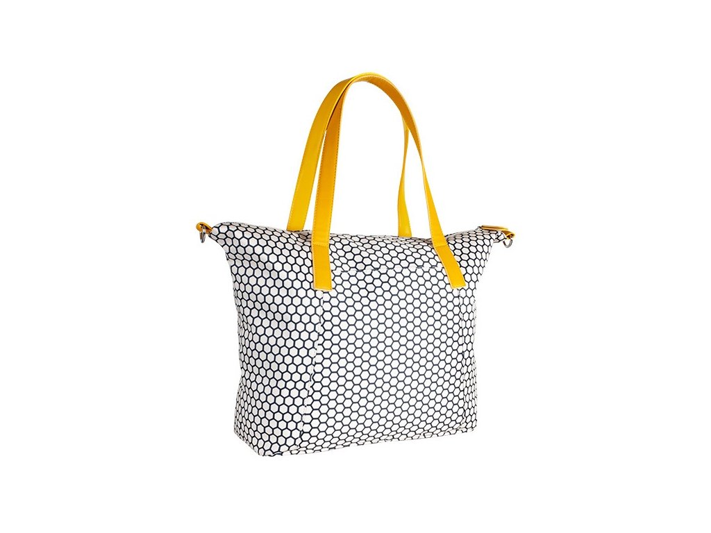 Přebalovací taška ke kočárku. Tato krásná trendy taška je vybavena přebalovací podložkou a samostatnou taštičkou. Tašku lze využit nejen na kočárek ale i jako klasickou kabelku. Taška je vybavena postranními popruhy, které umožňují připevnění ke kočárku. Zadní kapsa na magnet. Taška ke kočárku přizpůsobená dětským potřebám: - 1x vnější kapsa na magnet, - 3x vnitřní kapsa na gumičku, - 1x vnitřní kapsa na zip, - 1x termo vnitřní kapsa n gumičku, - 1x popruh na klíče, - vložené pevné dno, - 1x samostatná taštička, - 1x přebalovací podložka. Tašky jsou uvnitř i vně nepromokavé a tím jednoduše omyvatelné vlhkou tkaninou. Vhodná na procházky nebo k cestování s dítětem. Rozměry tašky : - šířka: cca 44 cm, - výška: cca 34 cm, - hloubka: cca 17 cm. 1. Jakost.Doplňkové parametry