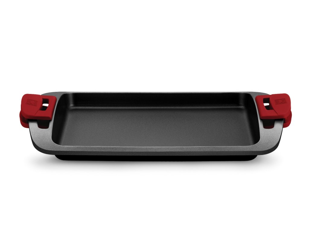 Pekáč řady Premiere je ideální pro každodenní použití v kuchyni. Kombinuje kvalitu s moderním designem. Jedná se o praktický pekáč vyrobený z litého hliníku s nepřilnavým povrchem Teflon Classic bez PFOA. Ergonomické rukojeti s odnímatelnými červenými silikony pro příjemné a bezpečné uchopení. Vynikající rozložení teploty pro dokonalou přípravu jídel. Snadno se čistí, je vhodný i do myčky na nádobí. Rozměry pekáče - 32,8 x 24,1 cm, výška 3,3 cm. Vhodný do trouby (bez úchytů).