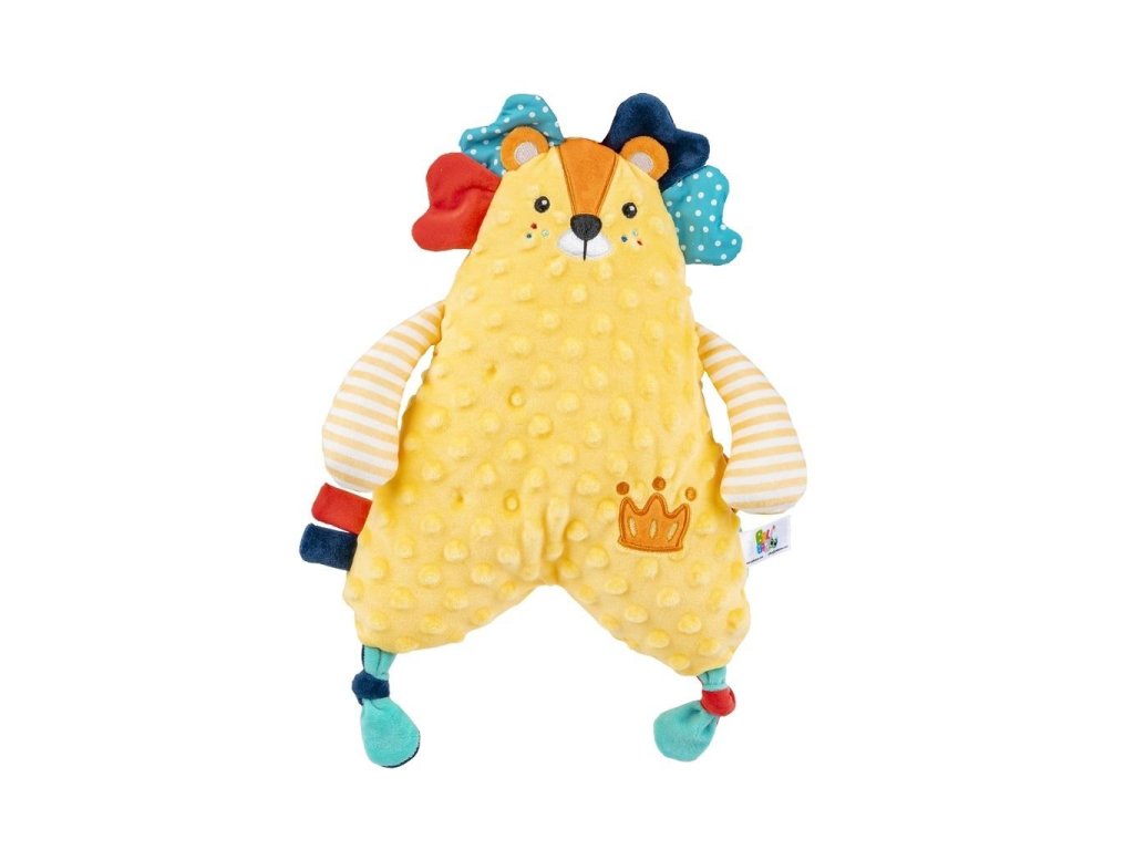 Plyšový mazlíček s kousátkem. Sladký lvíček je vysněným plyšákem každého malého mazlíčka! Toto krásné zvířátko v pastelových barvách je vyrobeno z materiálů s různými vzory a texturami, díky čemuž bude stimulovat smysly miminka, čímž mu pomůže rozvíjet jeho kognitivní schopnosti. Hračka je vybavena kousátkem s výstupky, které přinesou úlevu vašemu miminku při prořezávání zoubků. Plochý a měkký tvar hračky vybízí k pomazlení. Věk: 0 m+. Rozměry: celková délka 30 cm.Doplňkové parametry