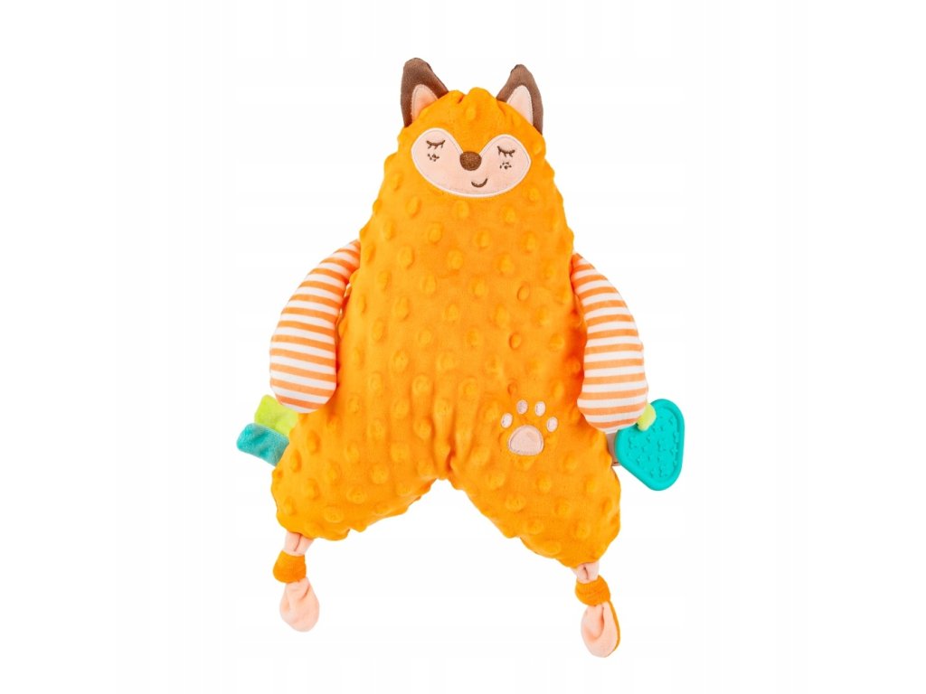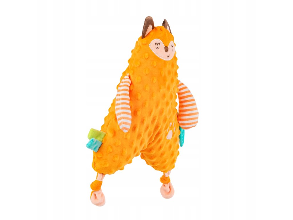 Plyšový mazlíček s kousátkem. Sladký Lišák je vysněným plyšákem každého malého mazlíčka! Toto krásné zvířátko v pestrých barvách je vyrobeno z materiálů s různými vzory a texturami, díky čemuž bude stimulovat smysly miminka, čímž mu pomůže rozvíjet jeho kognitivní schopnosti. Hračka je vybavena kousátkem s výstupky, které přinesou úlevu vašemu miminku při prořezávání zoubků. Plochý a měkký tvar hračky vybízí k pomazlení. Věk: 0 m+. Rozměry: celková délka 30 cm.Doplňkové parametry