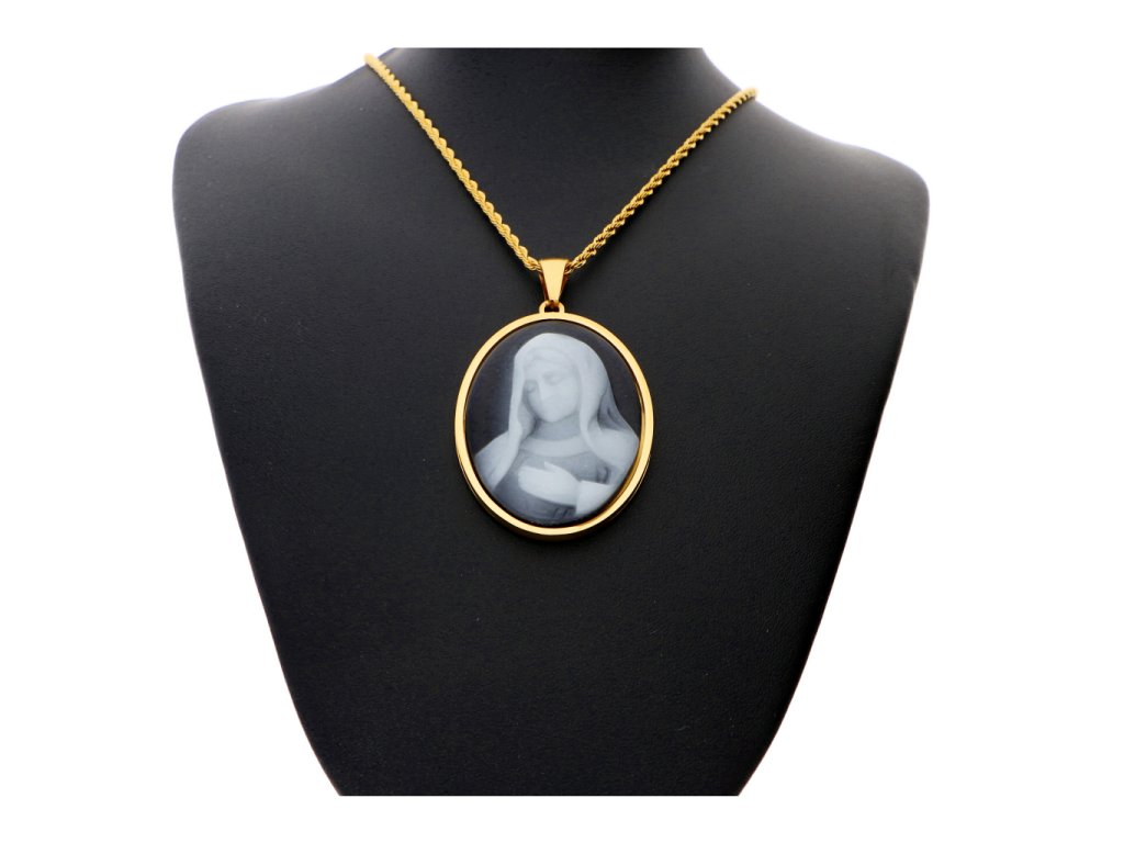 - přívěsek má ocelový základ ve kterém je osazený smaltový medailón