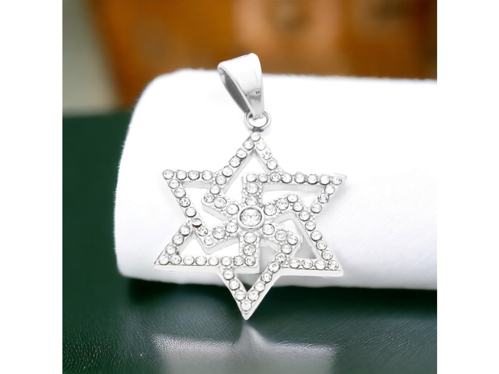 Elegantní ocelový přívěsek ve tvaru hvězdy zdobený zirkony.
