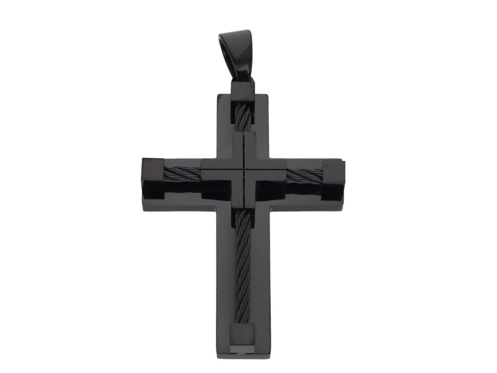 Přívěsek ocelový křížek černý + dárkové balení