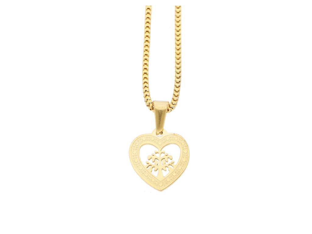 Přívěsek srdce se stromem života a řetízkem GOLD + DÁRKOVÉ BALENÍ