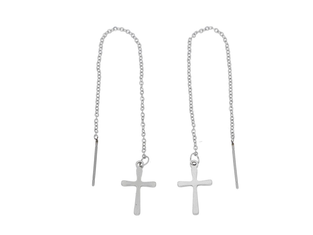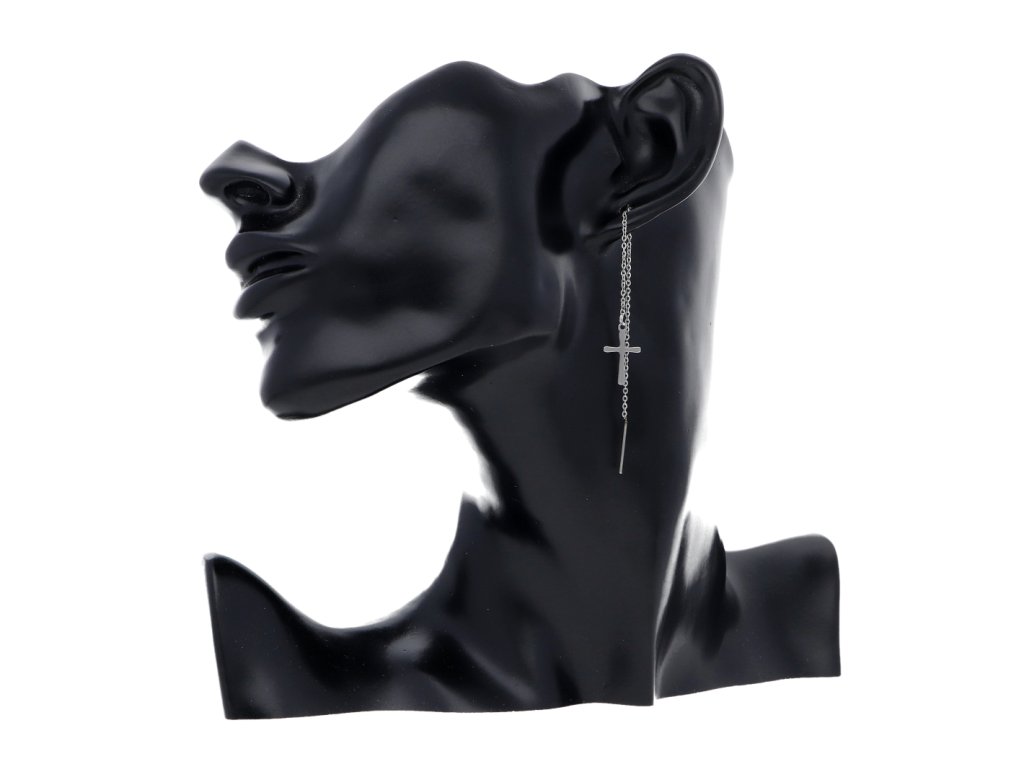 Provlékací ocelové náušnice křížek. Celková délka 12 cm. Materiál chirurgická ocel.