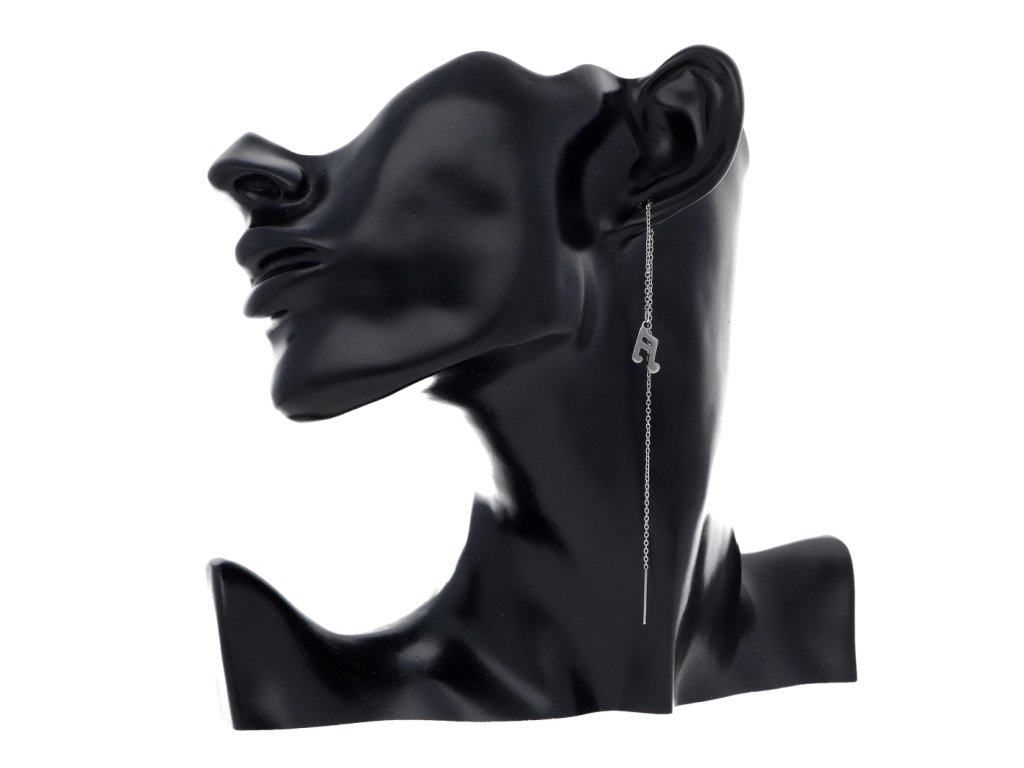 Provlékací ocelové náušnice Nota. Celková délka 14 cm.