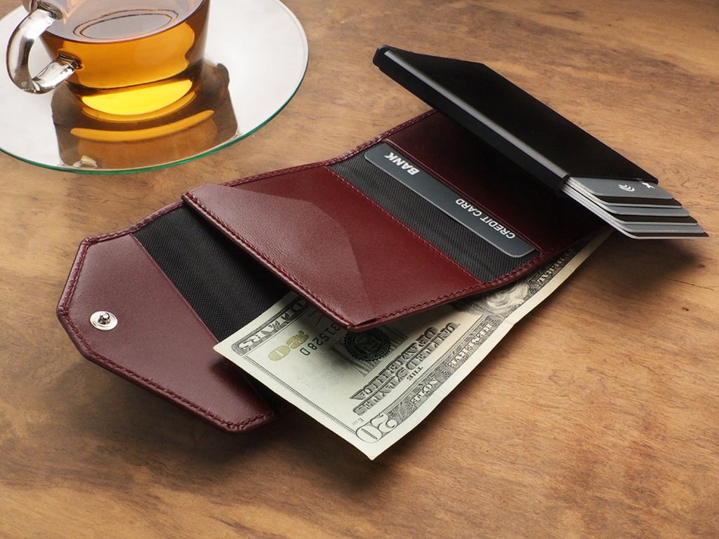 Má velkou kapacitu, prostor na 7 karet i kapsu na bankovky a kapsu na mince. Speciální mechanismus postupného vysouvání umožňuje rychle dosáhnout na hledanou kartu.