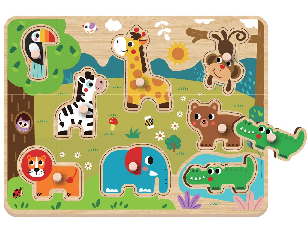 Jaký to krásný pohodový den! Sluníčko svítí a většina zvířátek právě vyšla ze svých domovů. Toto překrásné vkládací puzzle přináší skvělou možnost jak u našich nejmenších trénovat jemnou motoriku, trpělivost a poznávání zvířátek. Skládá se ze základny a 8 odnímatelných dílků. Hračka je vyrobena z kvalitního FSC dřeva a má krásné ilustrace díky kterým může také posloužit jako dekorace v dětském pokojíčku. Hlavní vlastnosti: obsahuje 8 vkládacích dílůrozvíjí smyslové dovednosti a koncentraciprocvičuje jemnou motoriku a trpělivost Značka a certifikát FSC® (Forest Stewardship Council) zaručuje, že dřevo, ze kterého byl produkt vyroben, nebylo vytěženo nelegálně a pochází z lesů obhospodařovaných šetrným či přírodě blízkým způsobem, ve kterém jsou dodržovány přísné environmentální a sociální požadavky. Značka FSC® na výrobku znamená, že svým nákupem pomáháte chránit lesy a podporujete šetrné, odpovědné či přírodě blízké hospodaření, díky kterému jsou naše lesy stabilnější, zdravější, mají přirozenou druhovou skladbu a lépe odolávají negativním následkům klimatických změn.Doplňkové parametry