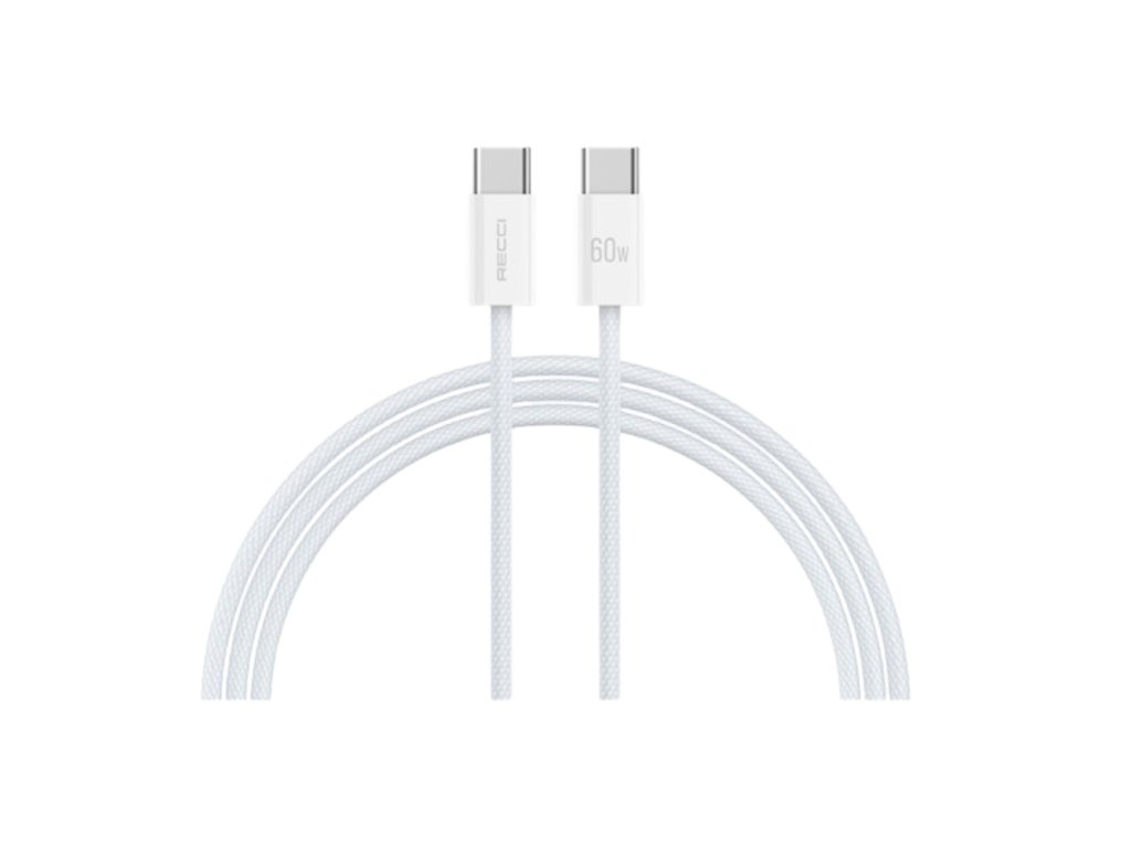 Recci nabíjecí a datový USB-C kabel s konektorem USB-C (2m/60W) RS15CC - Bílá