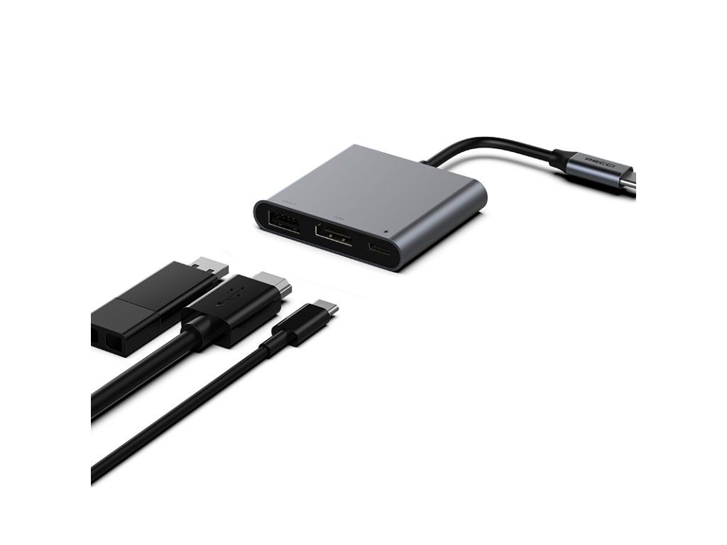 Recci RH05 USB-C hub - 3v1 (USB-A, USB-C, HDMI) - Šedá