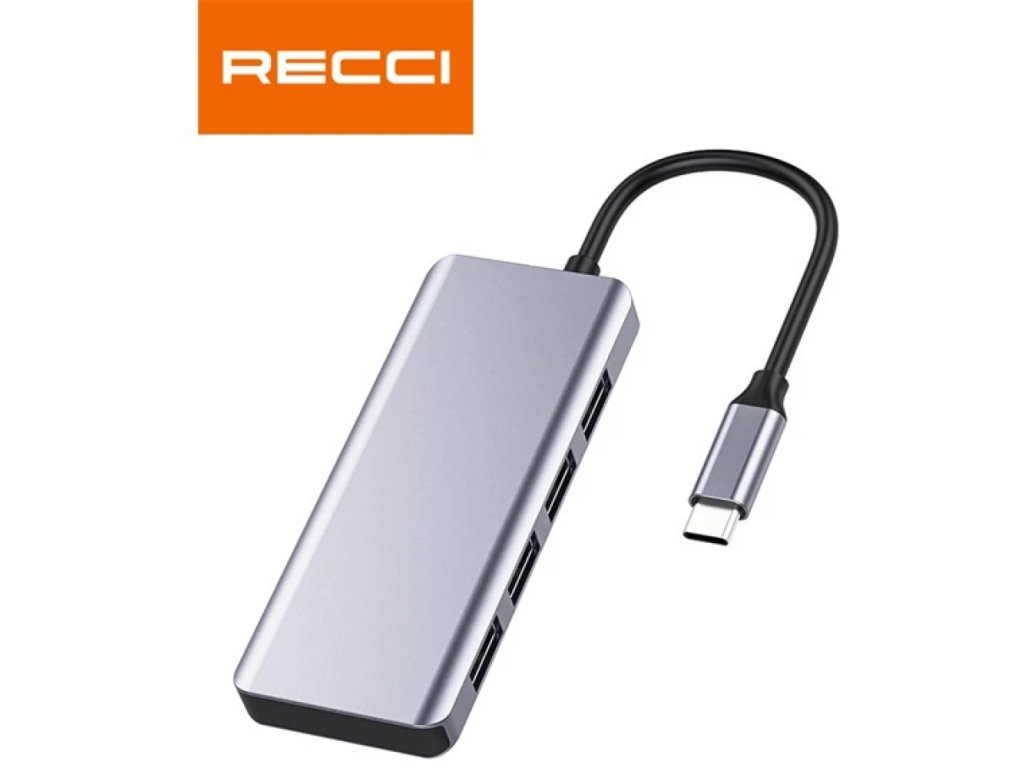 Recci RH06 USB-C hub - 5v1 (USB-A, micro USB) - Šedá