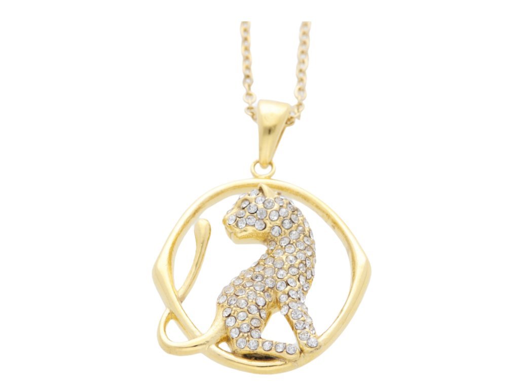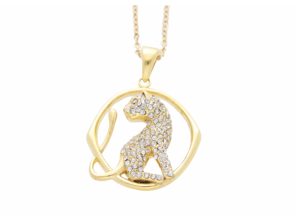Řetízek s přívěskem gepard se zirkony + dárkové balení