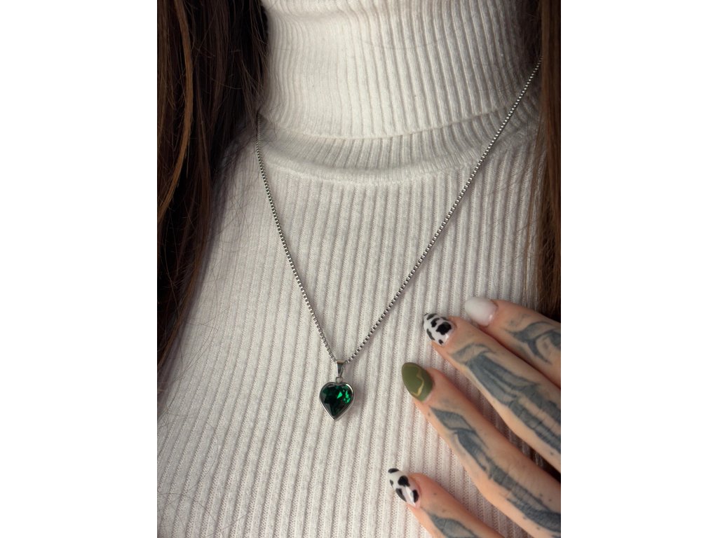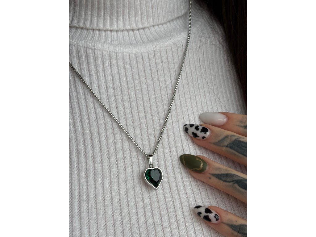 Řetízek s přívěskem srdíčka barva zelená FJ754 + dárkové balení