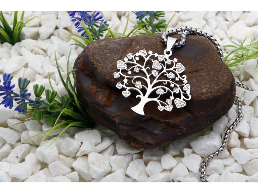 Řetízek s přívěskem strom života s krystaly ST996 + dárkové balení