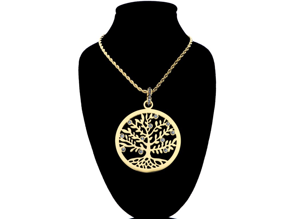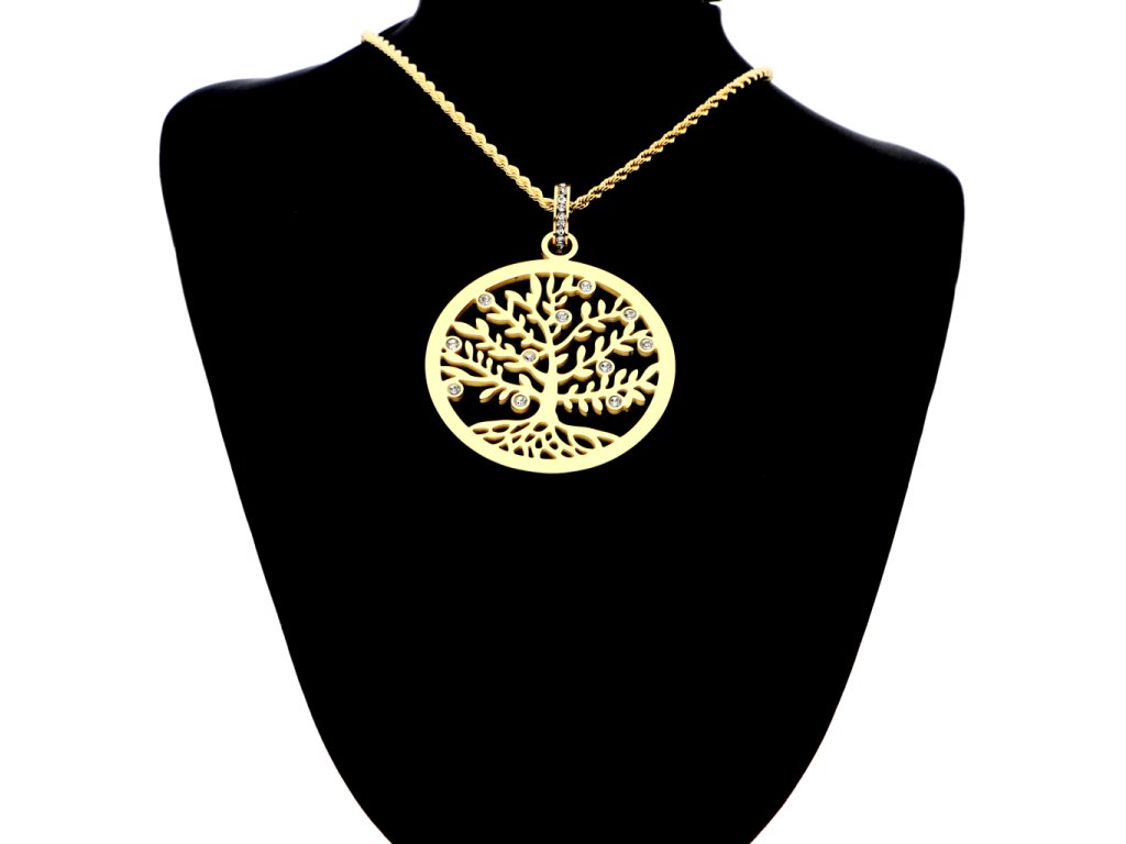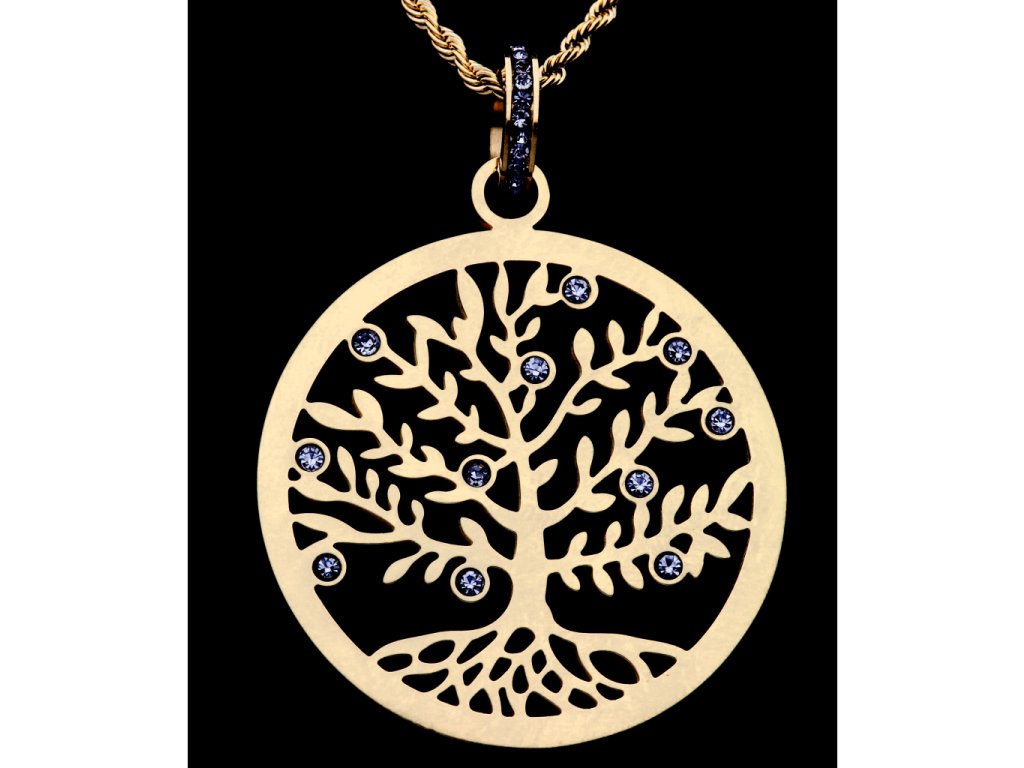 Řetízek s přívěskem strom života s krystaly ve zlaté barvě + dárkové balení