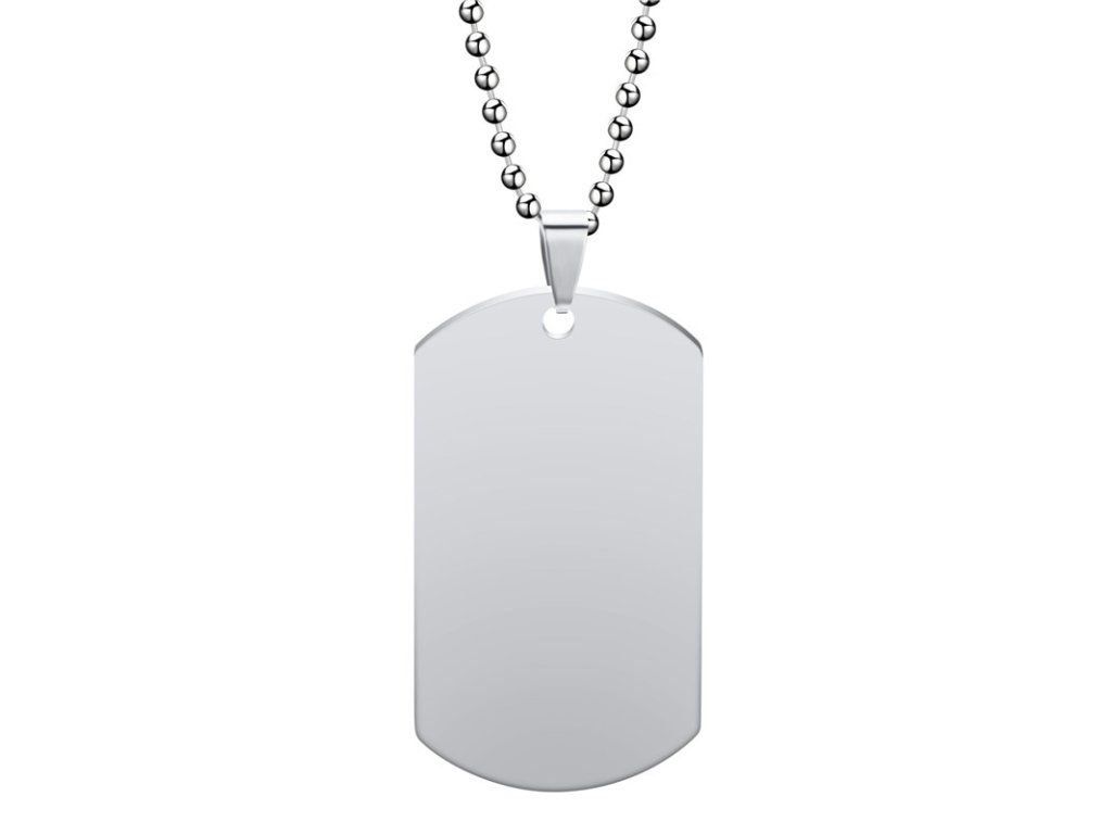 Řetízek z chirurgické oceli + identifikační známka 5 x 2,7 cm + dárkové balení