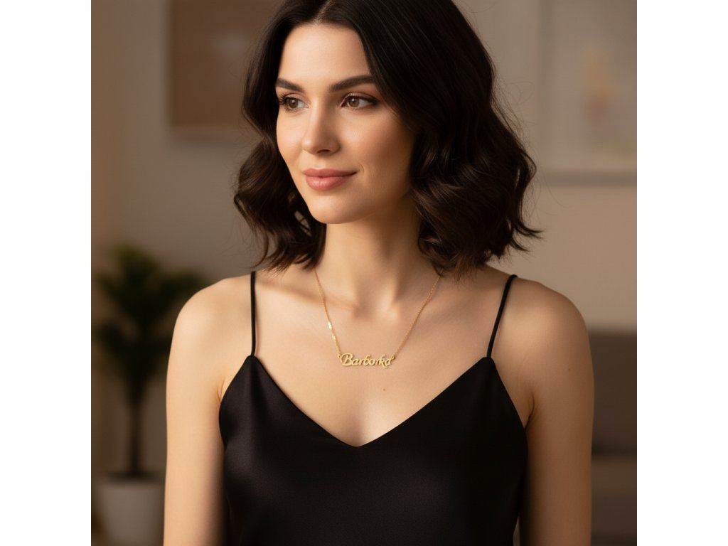 Řetízek z oceli se jménem Barborka zlatá ocel