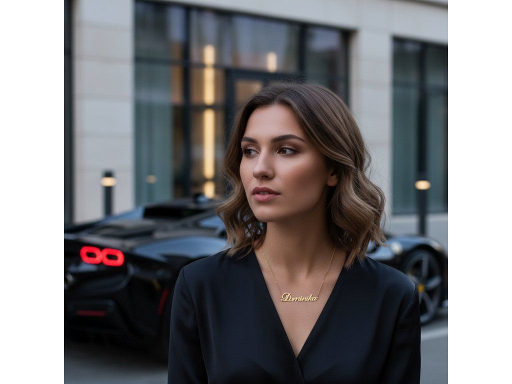 Řetízek z oceli se jménem Dominika zlatá ocel