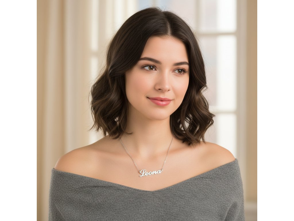 Řetízek z oceli se jménem Leona stříbrný + dárkové balení